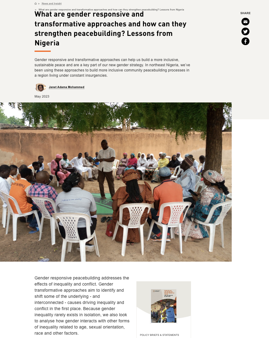What are gender responsive and transformative approaches and how can they strengthen peacebuilding? Lessons from Nigeria