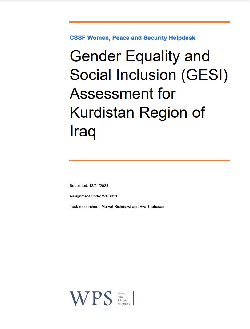 This report provides a gender equality and social inclusion analysis, in order to advance gender equality and women, peace and security as they pertain to recommendations contained in the Regional Human Rights Action Plan for the Kurdistan Region of Iraq for the period of 2021 to 2025.