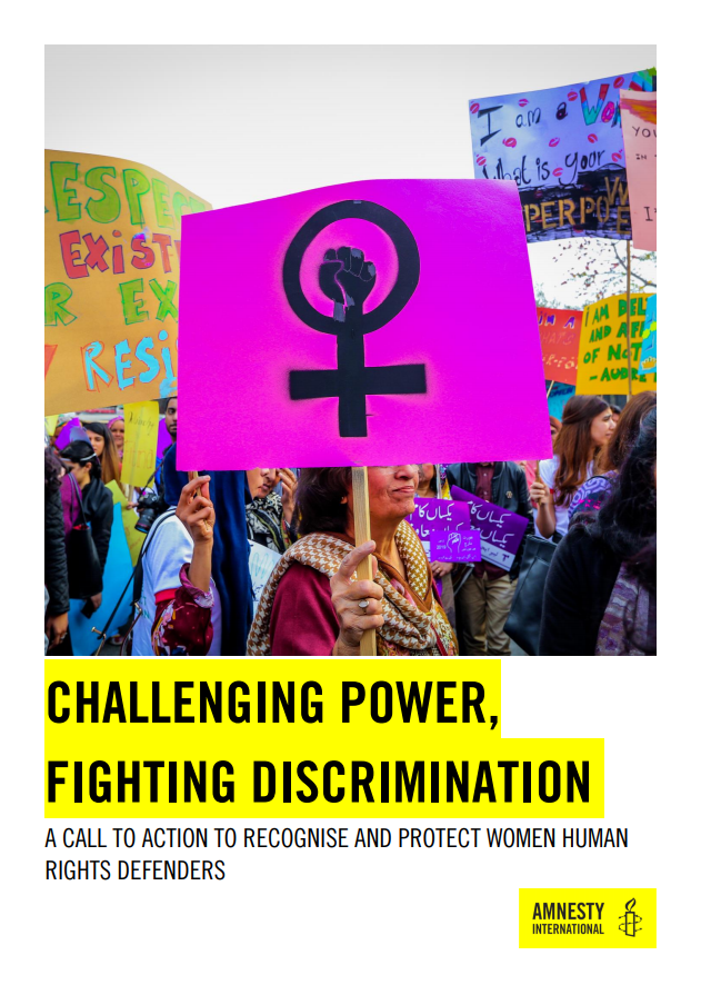 Amnesty International recently published 'Challenging Power, Fighting Discrimination: Call to Recognize & Protect Women Human Rights Defenders' which summaries the key challenges affecting women human rights defenders (WHRDs) that Amnesty International has documented globally in recent years and includes input collected through interviews conducted with 23 WHRDs from 21 countries in all continents between February and April 2019. All those interviewed insisted that more action is urgently needed so that they can continue with their critical human rights work in an environment free from violence, intimidation and harassment. The report ends with a series of recommendations that need to be urgently implemented in particular by states, who bear the main responsibility in ensuring a safe and enabling environment for WHRDs, but powerful non-state actors such as business and community leaders, as well as donors, financial institutions and intergovernmental bodies also need to take proactive steps to address the situation of violence, inequality, discrimination and exclusion faced by WHRDs.