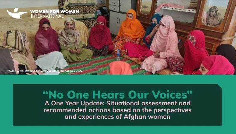 In March 2022 Women for Women International (WFWI) published “No One Hears Our Voices” a situational assessment and policy briefing on Afghan women’s priorities. In July 2022 WFWI conducted a follow-up survey with women and Afghan women’s rights organizations. Since publication WFWI have been leveraging this research to support Afghan women both inside and outside of Afghanistan. Read more here and here.