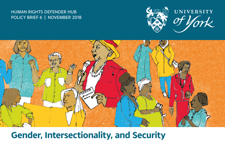The Human Rights Defender Hub at the University of York has published a policy brief titled "Gender, Intersectionality, and Security" that examines how gender and intersectionality affect women human rights defenders' risks, the issues they face, and their experiences of security and protection.