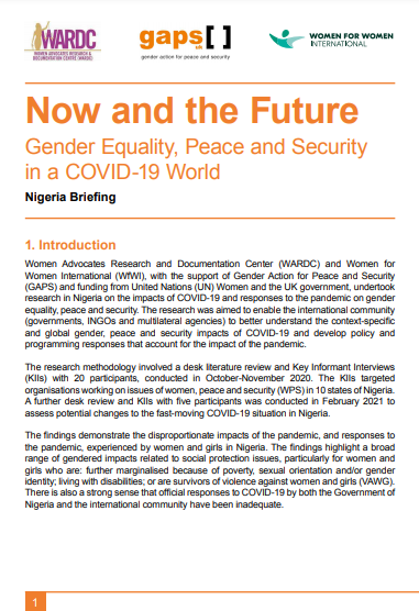 Now and the Future - Pandemics and Crisis: Gender Equality, Peace and Security in a COVID-19 World and Beyond: Briefing - Nigeria